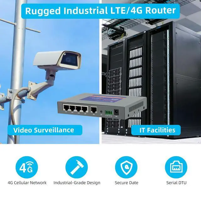 Ethernet Ports: This LTE modem is easy to deploy, cost & time saving, reliable works day and night 24/7 for internet access. It has 5 Ethernet Ports support multiple devices, making it widely used for Video Surveillance, Manufacturing, IT Facilities, Vehicle, Charging Station, Smart Grid, Construction Sites, and any other places that require a network. It can also be used as a reliable failover and backup network for the wired network in retail stores, warehouses, etc.