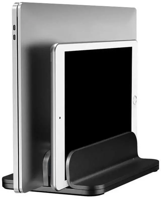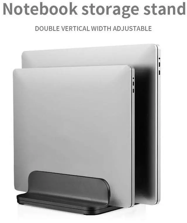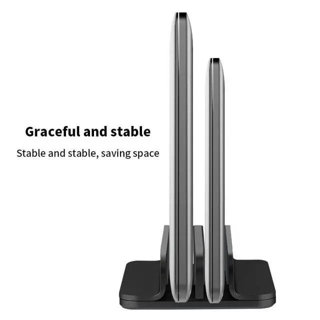 This vertical stand is made of aluminum alloy, which is sturdy and durable. Its surface has been oxidized and is corrosion-resistant. The double-opening design can store more items and make your desktop more concise