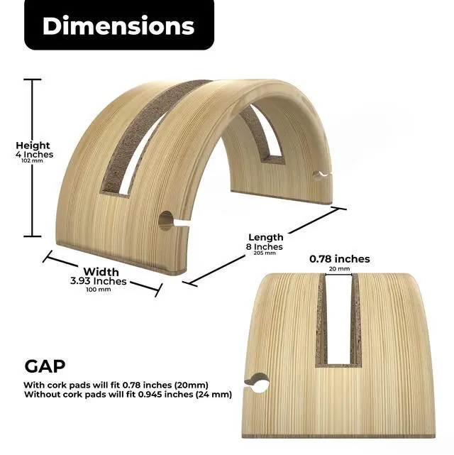 PROTECTIVE PADDINGOn the inside, it has soft cork padding to hold your laptop securely and protect it from scratches. WIDE COMPATIBILITY FOR MAC & PC NOTEBOOKSThe stand fits all laptops between. 8 inches EASY PORT ACCESS AND CABLE MANAGEMENTWhile your laptop is in the stand all ports are fully accessible, so you can connect it to the power, monitor, keyboard, and mouse. Integrated Cable management design keeps your cable connections handy and accessible, while keeping them from falling when disconnected. BETTER AIRFLOWThe bamboo and wood material and open design allow all-around natural air flows to keep your laptop cool.