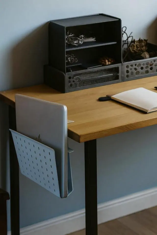 Design: Featuring a modern and minimalist aesthetic, this laptop holder not only helps organize your desk but also enhances the overall look of your workspace. Its clean lines and contemporary finish blend seamlessly with any office or home decor, adding a professional touch while keeping your area tidy and stylish. rall look of your workspace. Its clean lines and contemporary finish blend seamlessly with any office or home decor, adding a professional touch while keeping your area tidy and stylish.