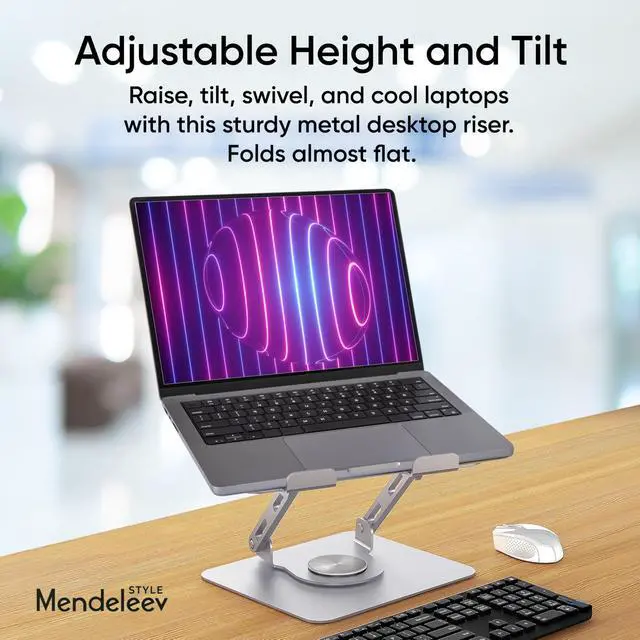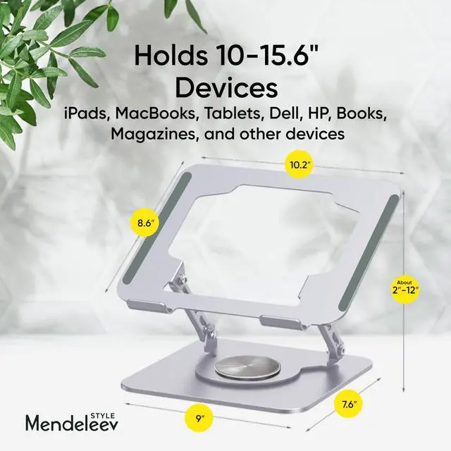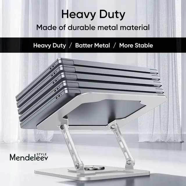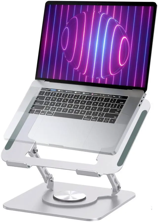 Laptop stand for desk can fully Foldable, it is easily to used, carry. Suitable for working at home, office and outdoor, make typing more easier. ^^ Featuring a 360 rotatable Two-axis connecting with the base, makes the rotation more flexible, computer stand allows you to swivel your laptop to any angle. ^^ Laptop riser holder is made of aluminum alloy, thus gives the stand a more stable performance, Anti-skid silicone can protects your laptop from sliding. ^^ You can free adjustable laptop stand height and angle to a perfect eye level and helps to reduce shoulder and neck pain.