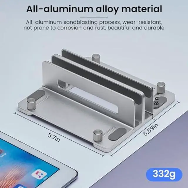 The Vertical Laptop Stand is more than just a space-saverits a smart, sturdy, and versatile solution for modern workspaces. Whether you're using it as a MacBook vertical stand, a dual laptop stand, or a compact laptop storage rack, its robust aluminum build and thoughtful design provide reliable support and improved airflow to keep your devices cool and organized. Easy to adjust and built to last, its the ideal laptop holder for desk setups everywherehelping you declutter, protect, and optimize your tech life.