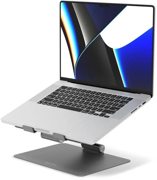 ^^ Seamless MacBook Compatibility: Designed with sleek aesthetics to match MacBooks, this travel laptop stand is compatible with laptops and tablets up to 16, including iPad Pros and similar devices.
