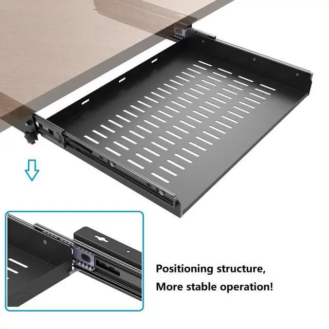 Design When Open: This under-desk drawer with locking stops at 2 sides will keep the tray from travelling when open.