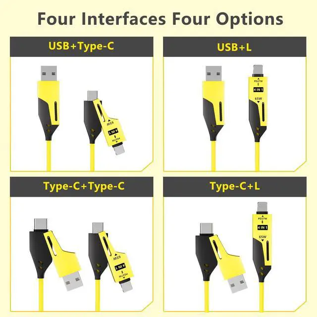 Charging Solution: This USB C charging cable combines USB A, USB C, and L-port connectors in one handy cable. It's the perfect solution for charging smartphones, tablets, laptops, and other accessories at home, in the office, or on the go ^^ 65W