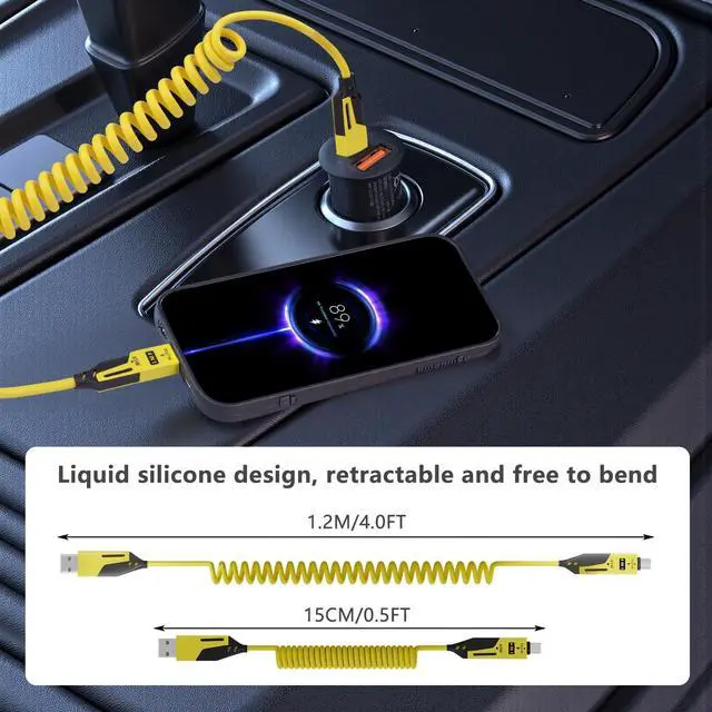 Smart Technology & Coiled Convenience: The usb to usb c cable with built-in voltage regulation to protect against overheating and overcharging, the car charging cable coiled design (from 0.5 ft to 4ft) keeps the cable neat and tangle-free perfect for keeping your space organized while you're on the move ^^ Built to