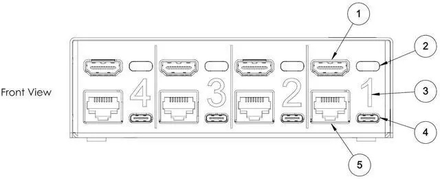 HDMI input ports: Video source from the target computer - 4x USB-C 2.0
