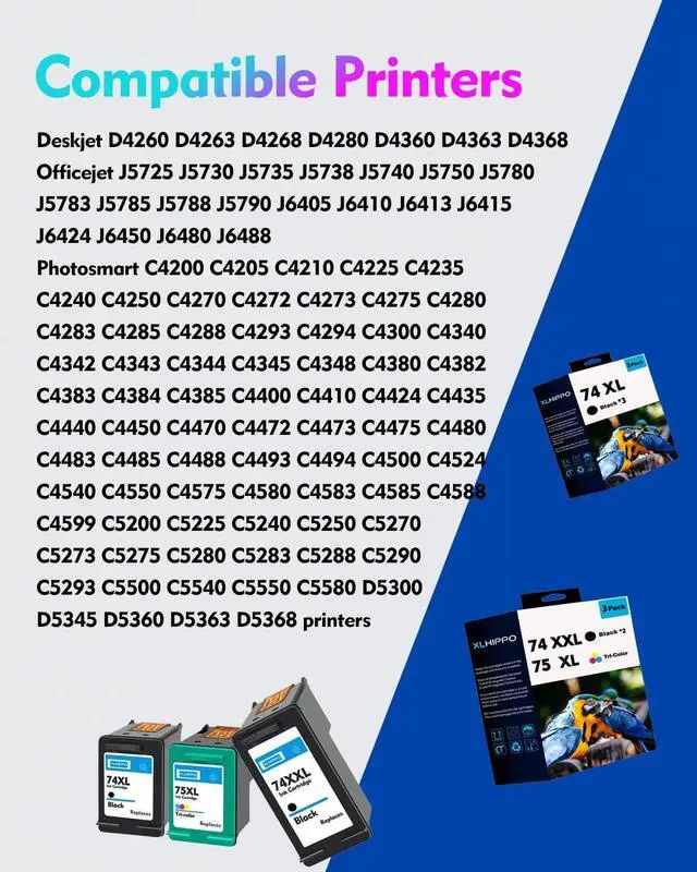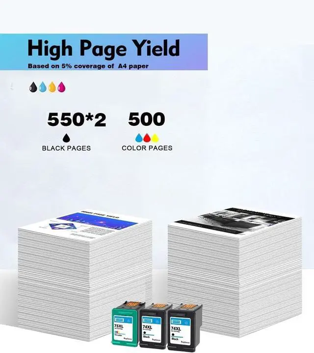 74XL 75XL Ink Cartridges Combo Pack Replacement for HP 74xl/75xl 74xl/75 HP 74/75 Ink Cartridges for DeskJet D4260 D4263 D4268 D4280 D4360 D4363 D4368 OfficeJet J5725 J5730 J5735 J5738 J5740 J5750 J5780 J5783 J5785 J5788 J5790 J6405 J6410 J6413 J6415 J6424 J6450 J6480 J6488 PhotoSmart C4200 C4205 C4210 C4225 C4235 C4240 C4250 C4270 C4272 C4273 C4275 C4280 C4283 C4285 C4288 C4293 C4294 C4300 C4340 C4342 C4343 C4344 C4345 C4348 C4380 C4382 C4383 C4384 C4385 C4400 C4410 C4424 C4435 C4440 C4450 C4470 C4472 C4473 C4475 C4480 C4483 C4485 C4488 C4493 C4494 C4500 C4524 C4540 C4550 C4575 C4580 C4583 C4585 C4588 C4599 C5200 C5225 C5240 C5250 C5270 C5273 C5275 C5280 C5283 C5288 C5290 C5293 C5500 C5540 C5550 C5580 D5300 D5345 D5360 D5363 D5368 et D4260 Photosmart C4280 C4300 C4400 C4500 OfficeJet J5788 J6480 Printer (2* 74xl black/1* 75xl color)