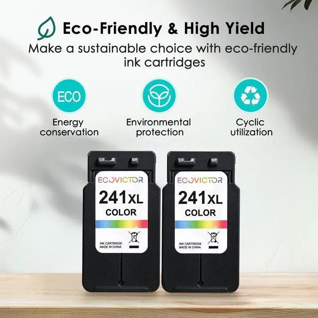 ^^ Eco-Friendly Printing Excellence: EcoVictor for canon 241 color ink cartridge is made from eco-friendly materials and the latest technology to deliver greater efficiency, higher printing precision, and reliable accuracy. Meeting FSC standards, these cartridges for canon printer ink 241 support sustainability. The ink for 241xl canon color ink prints natural photos and clear, sharp color text for your documents.