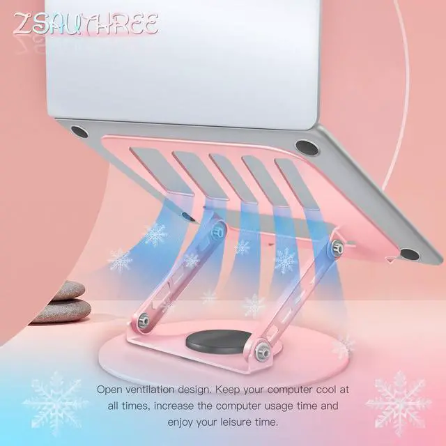 Stand Adjustable: 360-degree rotating phone holder & adjustable laptop stand allows for easy viewing and access to your device, perfect for multitasking and video calls. Share Your Screen Anywhere, Anytime! Our Rotating Laptop Stand for Desk Enables Seamless Collaboration in Open Office Plans and Virtual Meetings. So You Can Freely rotating your Laptop Screen & phone screen Via a Light Force When You are Doing Chats with Work, It Lets You Share Ideas with Ease. Upgrade Your Collaboration Experience Today! ^^