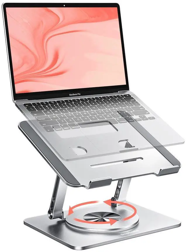 360 Rotation for Collaboration This laptop stand features high-strength dual shafts, a large rotatable base, and precision bearings for smooth 360 rotation. Perfect for meetings, video sharing, or group projectseasily swivel screens for efficient teamwork. Ideal as a computer stand for laptop or monitor stand for desk. ^^ Ergonomic Z-Shaped Adjustment This adjustable laptop stand with a Z-shaped design offers flexible height/angle adjustments, fitting various postures. It eases neck/back strain from long hours, keeping you comfortable and productive. Great as a laptop stand for desk, laptop riser for desk, or laptop stand for bed.