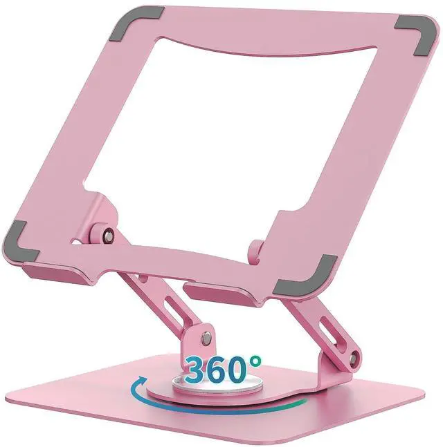 SOUNDANCE Laptop Stand with 360 Rotating Base, Ergonomic Computer Riser for Desk, Adjutable Height Muti-Angle, Foldable Laptop Mount, Stable Metal Holder Support 10-15.6" Notebook PC, Pink