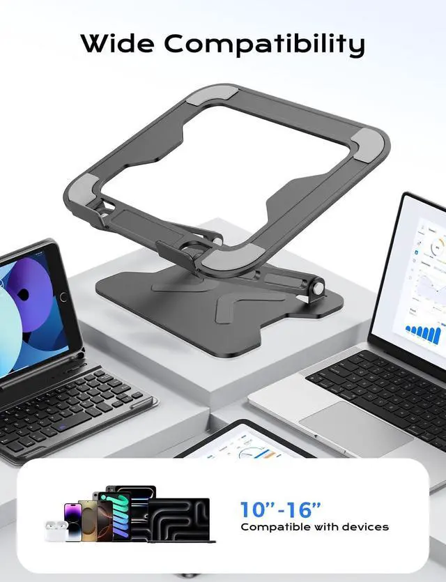 Wide Compatibility: This laptop holder is suitable for all laptops 10-16 inches and weighing within 8 kg, models like for MacBook, MacBook Air, MacBook Pro, Surface Laptop, Dell XPS, Google Pixelbook, HP, ASUS, Acer, Chromebook, Alienware, etc ^^