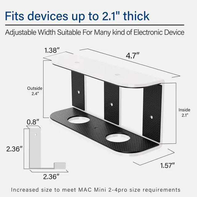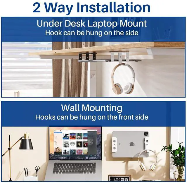 • Space Saving: Our laptop stand sits under the table, saving valuable desktop space and bringing you great convenience. It not only supports laptops, but also suitable for devices up to 2.1 inches thick. for Macbook, laptops, Mac Mini, cable boxes, modems, smart TV boxes and more. It can
