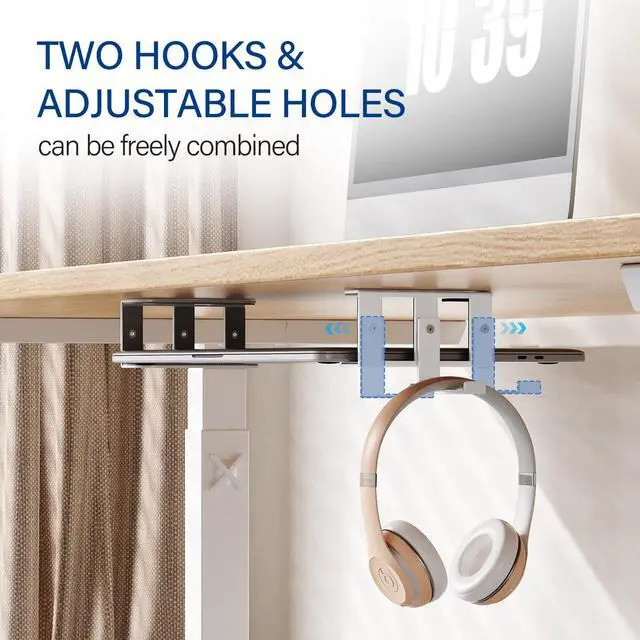 Storage Hook: This sturdy and durable headphone stand comes with 2 convenient storage hooks. In addition to securely storing headphones, it is also suitable for hanging cables and organizing wires, making the desktop more tidy. The bracket is designed with multiple installation holes, which can be flexibly installed according to usage needs. Its maximum load-bearing capacity is up to 10 pounds, stable and reliable, meeting various suspension needs ^^