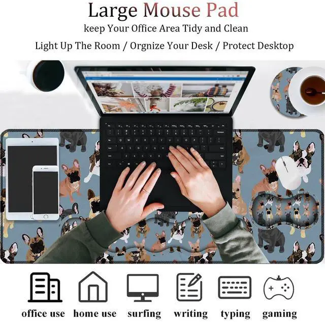 Features: Breathable material - memory foam structure, comfortable and lightweight, durable, no deformation. The soft, breathable material provides lasting support for the wrist. Non-slip base - Natural rubber material is used at the bottom of the non-slip texture to prevent sliding or unnecessary movement. Ergonomic design - comfortably support your hands and wrists, keeping your hands level with the keyboard and mouse, minimizing wrist stress and fatigue. Easy to clean - maintain a bright and vibrant color after repeated use and cleaning. Stitched edges - The gaming mouse pad uses exquisite edge stitching to prevent wear, deformation or damage and ensure long service life. Wide use - With this large keyboard pad, you can make your desktop look neat and beautiful. It is also a good practical gift idea.