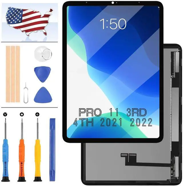 CompatibilityDesigned exclusively for the iPad Pro 11 3rd 4th Gen 2021 2022 A2377 A2459 A2301 A2460 2022 A2435 A2761 A2762 A2759 LCD Screen Replacemeent, 11 inch. Please make sure you have the correct model number you need before purchasing. If you are not sure of your model, you can provide us with a picture of the flex cable on the back of the screen. ^^ Perfect ReplacementTailored for iPad Pro 11 3rd 4th Gen 2021 2022 screen replacement, it can repair malfunctioning screens, replace cracked or damaged screens, and resolve issues like dead pixels, touch responsiveness, display misalignment, and color discrepancies.