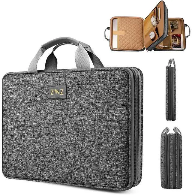 Slim & Expandable - A variable capacity for a flexible load. The laptop handbag owns two compartments, the laptop compartment is for storage your digital devices, laptop, iPad, phone, charger, power bank and keep them safety; the expandable compartment can release more capacity for loading, just like books, files, glasses box etc. This laptop case is easy to transform between slim and expandable, which make it convenient for daily use and traveling wherever you go. ^^ Perfect Protection - Compared with other similar laptop case, zinz comes with FullProtection patent design around whole compartment and thick internal cushioning low rebound foam around your device and a ultra-thick soft protective ridge around the zipper to ensure your laptop will remain safe from drops, bumps, dents, scratches and spills, like the car airbag.