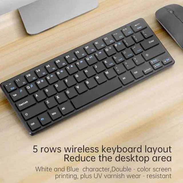 Comfortable Design: The keyboard features a wireless layout with white and blue characters printing, providing a comfortable typing experience while reducing eye strain. The anti-ultraviolet varnish coating adds durability and a sleek appearance.