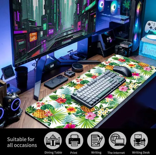 Durable, Precision-Engineered SurfaceCrafted with a fine-textured fabric, this computer mouse pad offers the ideal balance between smooth glide and superior control. Its specifically designed to enhance mouse tracking, providing exceptional precision for both optical and laser sensors. Whether youre gaming or working, the surface ensures your movements are reflected with remarkable accuracy, making it a great choice for anyone seeking a desk mat for desktop use. Plus, the material is highly durable, reducing wear over time and preventing the common fraying issues seen with lower-quality mouse pads. Non-Slip Base for Stability and ProtectionNo more worrying about your mouse pad shifting mid-game! This large mouse pad features a soft, dense non-slip rubber base that keeps the desk pad securely in place.