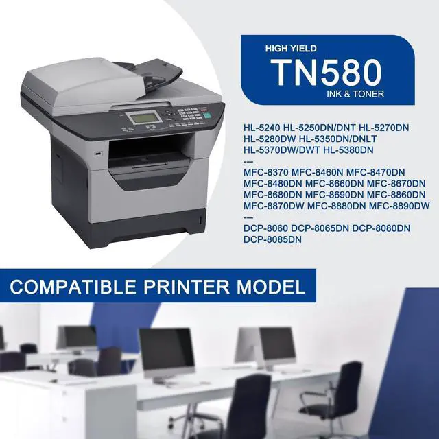 ^^ Page Yield: 7, 500 pages per TN580 Black Toner Cartridge at 5% coverage (Letter/A4). ^^ Compatible for