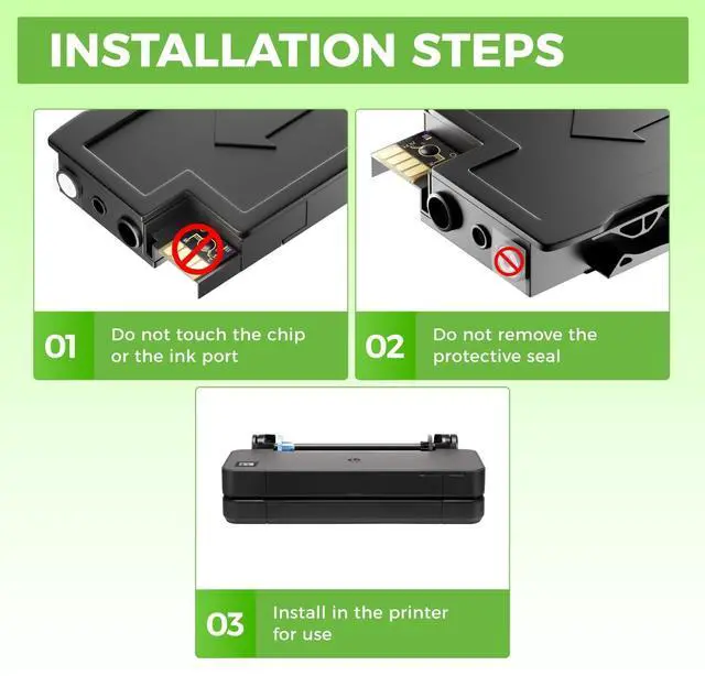 DesignJet Studio: 24-in, Steel 24-in, 36-in, Steel 36-in Printer. ^^ Page YieldUp to Black is 3, 000 pages per black Ink cartridge and Color is 1, 600 Pages per color Ink cartridge (Letter/A4, at 5% Coverage). ^^ High Quality712XL Ink Cartridges with chip can be instantly identifed by your printers and work perfectly, making daily documents, reports, letters, graphics and photos very clear and bright. ^^ Latest Chip VersionThe KingKJ Ink Cartridges is equipped with the latest built-in chip, ensuring perfect compatibility between each Ink Cartridges and the printer. When using the KingKJ Ink Cartridges to print for your printer, you will receive clear text and sharp images. All KingKJ Ink Cartridges have undergone strict quality testing to ensure stability and reliability, and have obtained ISO9001 certification. In addition, our product team offers 2-year warranty, 24-hour customer service, and replacement services for defective products.