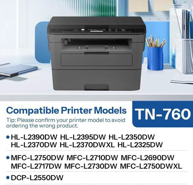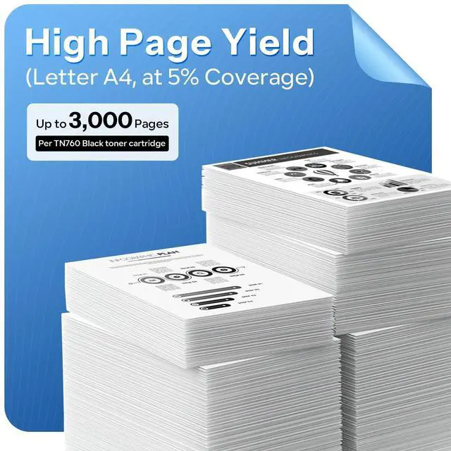 Compatible Printer Models: MFCL2750DW HLL2390DW MFCL2710DW HL-L2350DW HLL2395DW HL-L2370DW HL-L2370DWXL HL-L2325DW DCPL2550DW MFC-L2690DW MFCL2717DW MFC-L2730DW MFC -L2750DWXL ^^ The page yield of each tn760 black toner is up to 3000 pages (Based on up to 15% coverage) ^^