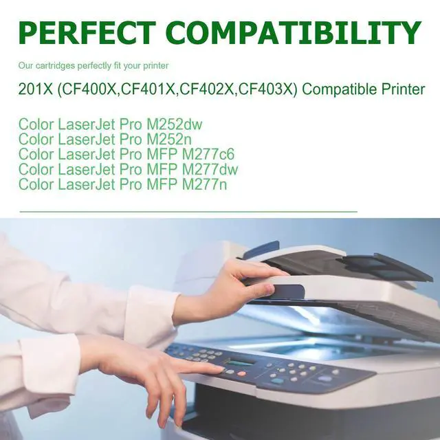 ^^ Compatible Printers: Compatible for HP Color LaserJet Pro M252dw, M252n; Color LaserJet Pro MFP M277c6, M277dw, M277n ^^ all 201X toner are made in an ISO 9001 and ISO 14001 certified facility ^^ 201X Toner Cartridge adapt latest upgraded chip that can be quickly recognized by the printer. to ensure compatibility and reliabilityfor exceptional performance provideslong-lasting printing experience