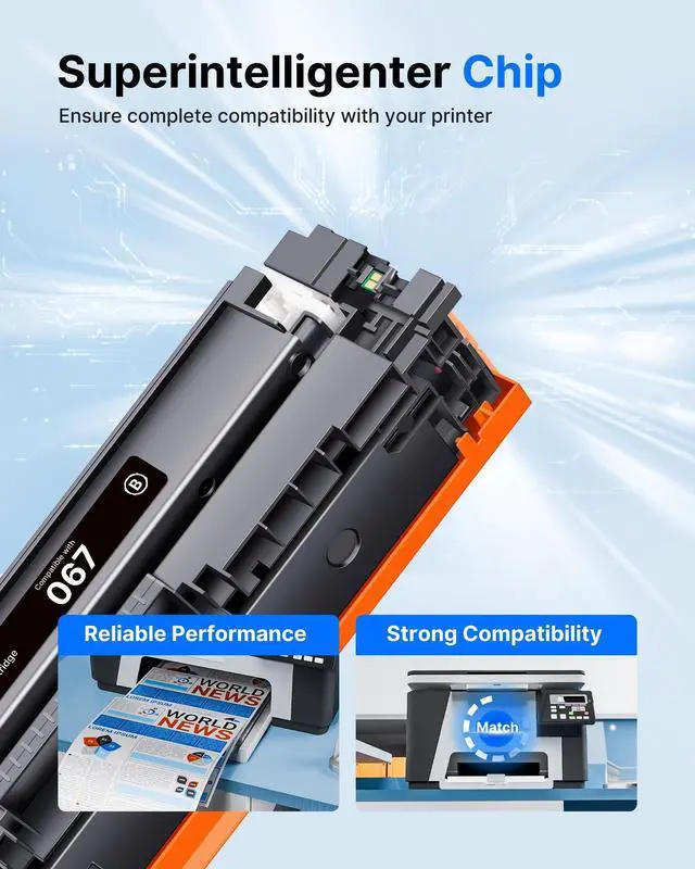 1. Latest Upgraded ChipCompatible for Canon 067 067H toner cartridges set come with UPGRADED CHIPS to ensure quality and compatibility with your printer ^^ 2. Printer Compatibility Compatible for Canon 067 067H Toner Cartridge Set Compatible with Canon imageCLASS MF656Cdw LBP632Cdw MF654Cdw MF653Cdw LBP633Cdw LBP631Cw MF651Cw MF656Cdw MF650C MF652Cdw MF652Cw LBP630C MF657Cdw MF655Cdw laser printer ^^ 3. Page Yieldup to 1, 350 pages per 067 Black Toner Cartridge and 1, 250 pages per 067 Color Toner Cartridge for Canon mf654cdw toner cartridge (at 5% coverage of A4/letter paper). ^^ 4. Package Included4 Pack of Compatible for Canon 067 Toner Cartridge Set Replacement for Canon Toner Cartridges 067 067H Toner Cartridges