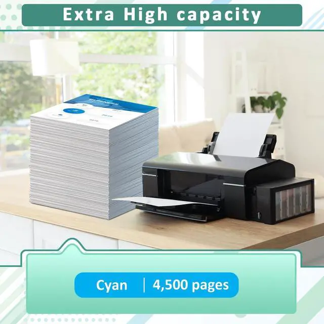 ^^ High-capacity print yield: 4500 pages in cyan (5% coverage/A4 paper). very suitable for schools, hospital, company, law office, home and office with a lot of printing.