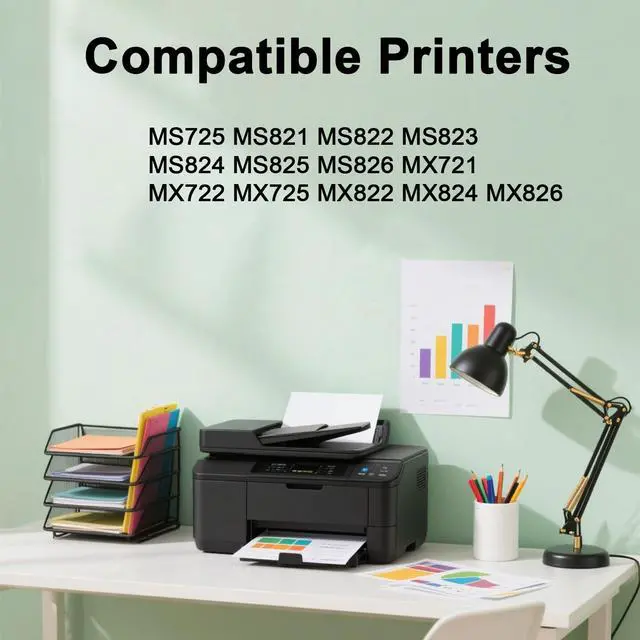 Compatible PrintersMS725 MS821 MS822 MS823 MS824 MS825 MS826 MX721 MX722 MX725 MX822 MX824 MX826 Printers ^^ High Pages YieldUp To 7, 500 Pages Per 58D1000 Black Toner Cartridge at 5% Coverage of Letter/A4 Paper ^^ Package Includes1 Pack 58D1000 Black Toner Cartridge Replacement for 58D1000 Black Toner Cartridge ^^
