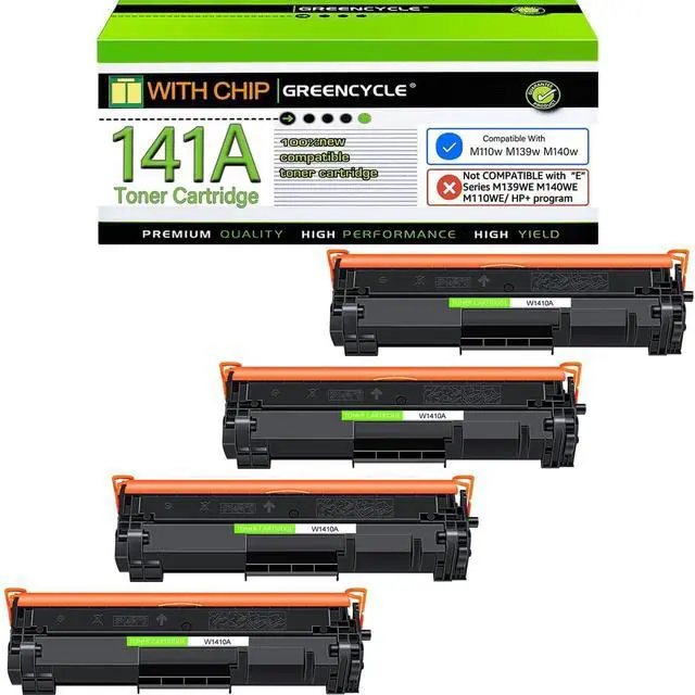 GREENCYCLE 4-Pack Compatible Black Toner Cartridge Replacement for HP 141a toner cartridge (WITH CHIP). ^^ Compatible for
