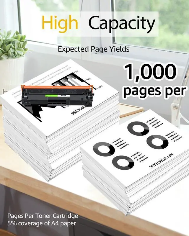 ^^ Page Yield: The printer will not display toner level, this toner cartridge contains a standard amount of toner that is accurately filled using a precision machine. Up to 1, 000 pages per W1410A toner cartridge (based on 5% coverage of Letter size Paper)Actual toner yield varies with usage, graphics printed and environmental conditions. ^^ Compatible toner cartridges provide same performance and printing as genuine cartridge. Our cartridges are made of quality materials: smart chip, toner powder, smooth OPC & roller and industrial grade packaging. ^^ Make your presentations and printouts stand out with GREENCYCLE toner cartridge that produces clear, crisp, bold, and eye-catching text and graphics that keep people awake at your next meeting.