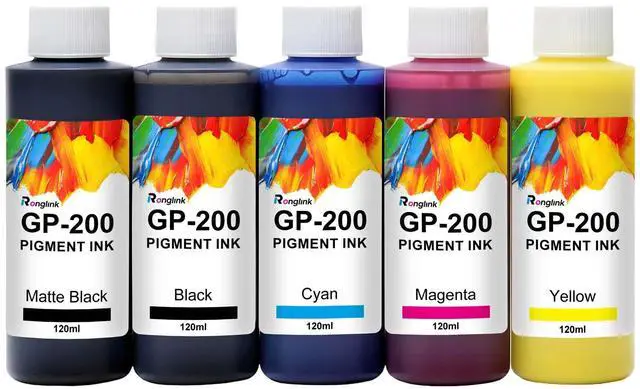 Package includes: 1 x GP200 Black Ink Bottle, 1 x GP200 Matte Black Ink Bottle, 1 x GP200 Cyan Ink Bottle, 1 x GP200 Magenta Ink Bottle, 1 x GP200 Yellow Ink Bottle replacement for Canon GP200 ink bottle, GP200 ink refill. ^^