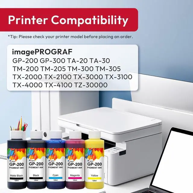 GP-200 Refill Ink Work with: Replacement for imagePROGRAF GP-200 GP-300 TA-20 TA-30 TM-200 TM-205 TM-300 TM-305 TX-2000 TX-2100 TX-3000 TX-3100 TX-4000 TX-4100 TZ-30000 Printer. ^^ High-Yield for
