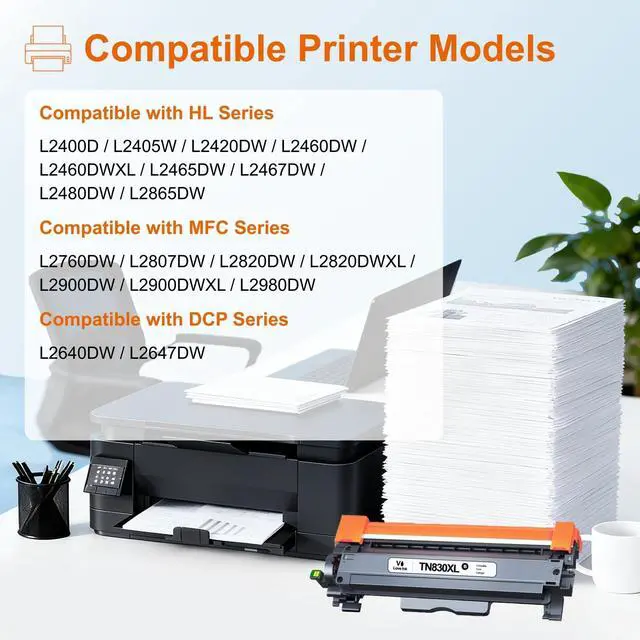 Superior Quality: Our TN830XL toner cartridge utilizes the latest upgraded chips. Through advanced automated production processes and strict quality control, to ensure stable, reliable and consistent printing performance
