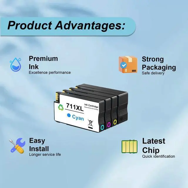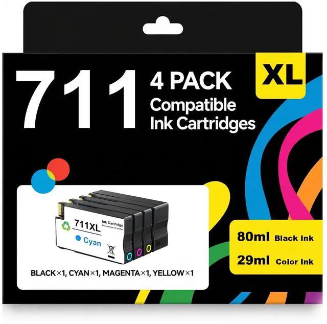 Package contents: 4 Packs of 711XL Ink Cartridge (1 Black 1 Cyan 1 Magenta 1 Yellow) ^^