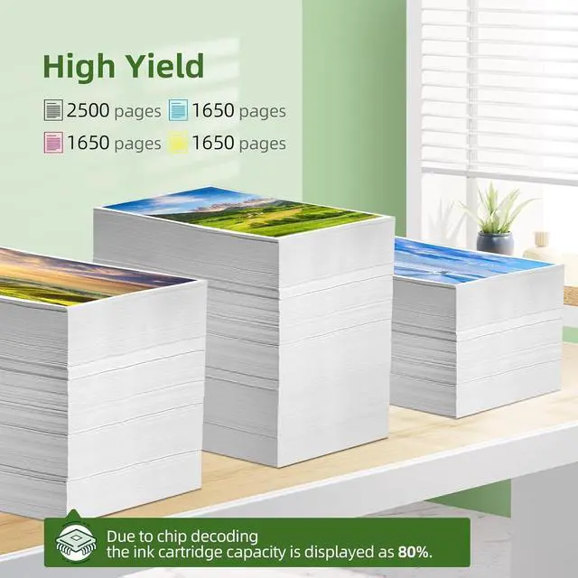 Internally upgraded intelligent chip: 936 ink combination set ensures rapid recognition and real-time ink level display, thereby achieving smooth and efficient printing results. ^^