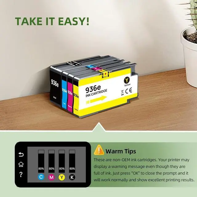 What's in the box: 4 new Gagalay for HP 936 Ink Cartridges 1 black, 1 cyan, 1 magenta, 1 yellow