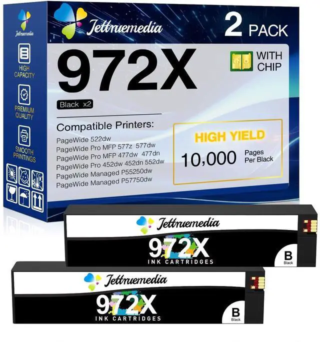 Compatible Printers: Jettruemedia 972A 972X ink cartridges are compatible with HP PageWide Pro MFP 477dw, 477dn, 577z, 577dw, PageWide 522dw, PageWide Pro 452dw, 452dn, PageWide Managed P55250dw, P55750dw Printers, Suitable for use with office and home, matching your printer greatly improves work efficiency (Non-OEM Cartridge).