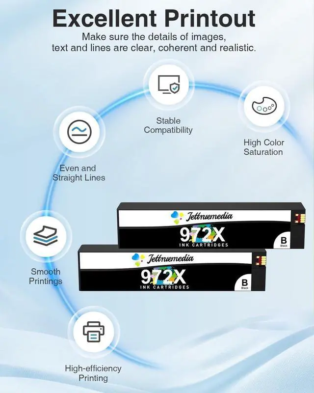 ^^ Excellent Print Quality: Jettruemedia 972X ink compatible ink cartridge, our cartridges provide reliable printing performance, deliver clear text and vivid images, providing seamless printing.