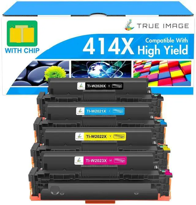 • What's in the box: TRUE IMAGE compatible 414X toner (with chip) replacement for HP 414X toner cartridges 4 packs high yield