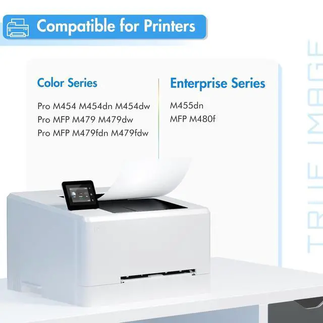 • Compatible for HP Printer: Color Pro MFP M479fdw M479fdn M479dw M479dw, Color Pro M454dw M454dn, Color Pro MFP M479 M454, Color Enterprise M455dn, MFP M480f laser printer