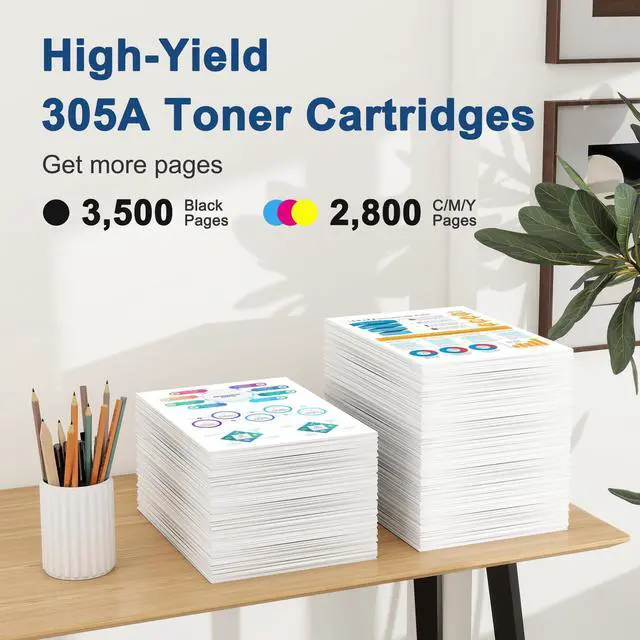 High Page Yield: Up to 3, 500 pages per 305a black toner cartridge, 2, 800 pages per 305a color toner cartridge. (Based on 5% coverage of A4 paper) ^^