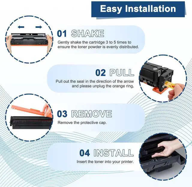 Professional Print Quality: 305a toner cartridges delivers sharp text, vibrant graphics, and precise color accuracy. Laser imaging ensures crisp details, smear-free output, and prevents toner leakage for reliable high-yield performance ^^ Equipped with