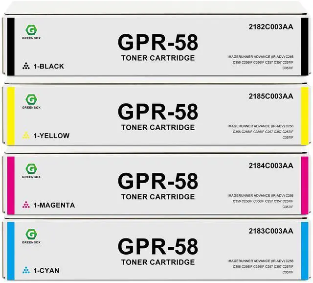 Contents: 4 Pack Remanufactured GPR58 Toner Replacement for Canon GPR-58 Toner Cartridges 2182C003AA 2183C003AA 2184C003AA 2185C003AA (1 Black, 1 Cyan, 1 Magenta, 1 Yellow) ^^