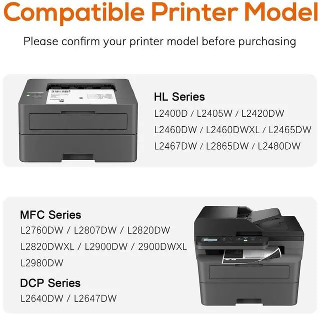 ^^ Printer Compatibility: TN830XL TN830 Toner for Brother Printer Compatible for HL-L2460DW, HL-L2405W, DCP-L2640DW, HL-L2400D, MFC-L2820DW, HL-L2420DW, HL-L2460DWXL, HL-L2465DW, HL-L2467DW, HL-L2865DW, HL-L2480DW, DCP-L2647DW, MFC-L2760DW, MFC-L2807DW, MFC-L2820DWXL, MFC-L2900DW, MFC-2900DWXL, MFC-L2980DW printers.