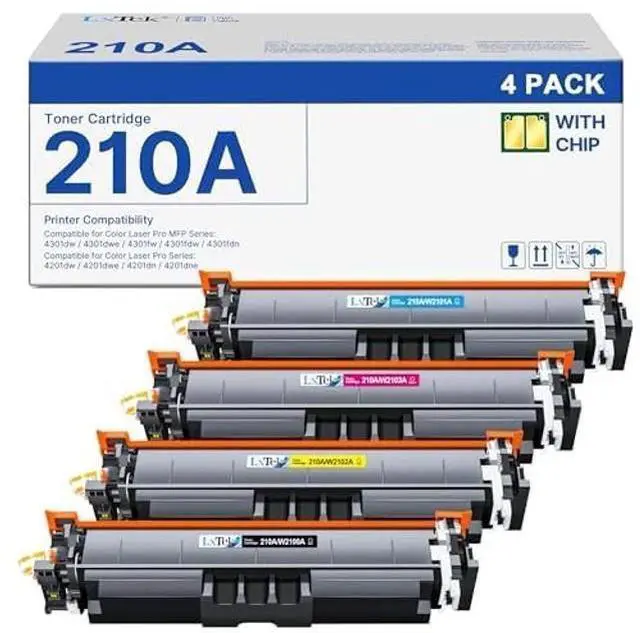 210A with chip: LxTek Compatible with HP 210A W2100A toner cartridges 4 pack are already installed with chips, no need to transfer original 210A or 210X toner cartridges chip to them ^^ Package Contents 210A Toner 4