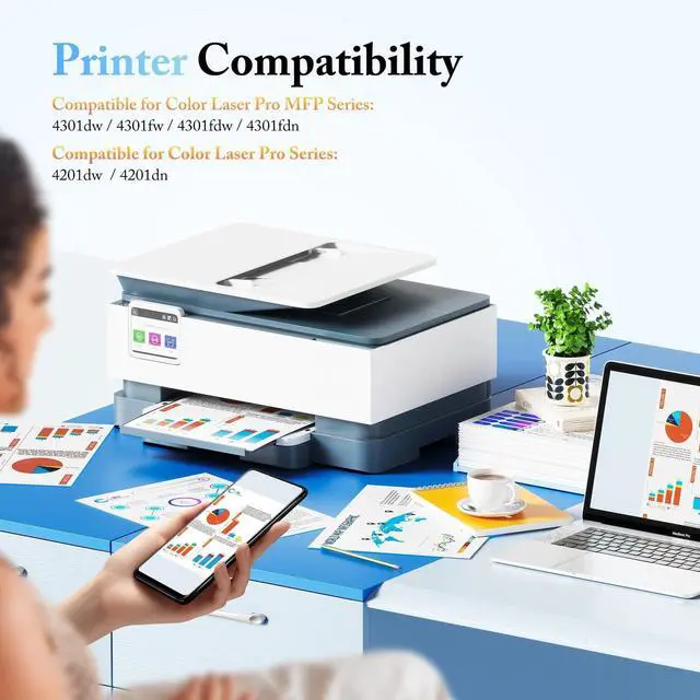 Compatible Printers: 210A W2100A Toner Cartridges with Chip Compatible with HP Color Laserjet Pro MFP 4301dw 4301fdn 4301fdw, Color Laser Pro Series 4201dw 4201dn printer.
