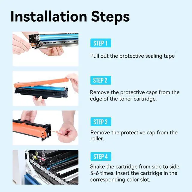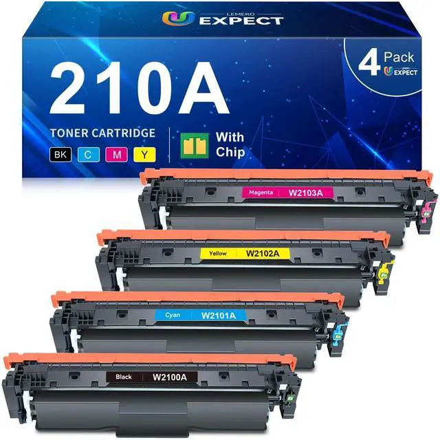 Package Contains: Replacement for HP 210A Toner Cartridges 4 Pack ( 1 x 210A Black toner cartridge-W2100A, 1 x 210A Cyan toner cartridge-W2101A, 1 x 210A Magenta toner cartridge-W2103A, 1 x 210A Yellow toner cartridge-W2102A) ^^